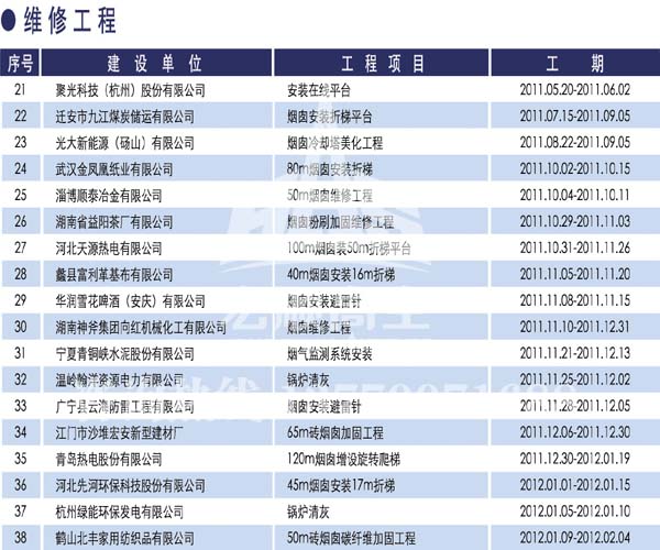 宏順建設工程有限公司是國家批準成立的專業(yè)高空作業(yè)企業(yè):承攬過(國內.國外)煙囪新建、煙囪防腐、磚煙囪新建、煙囪改造、煙囪維修、煙囪脫硫防腐、煙囪拆除加高、煙囪滑膜等高空作業(yè)工程。具有“不搭腳手架 、 不需要停產”施工特點。
